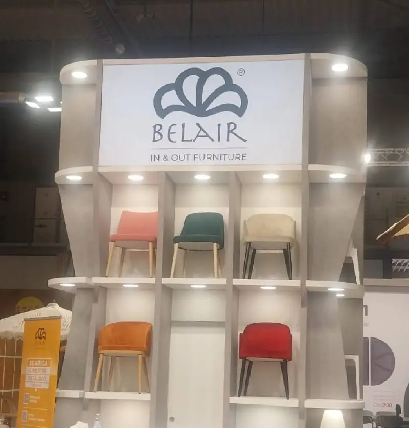 Montaggio, allestimento e smontaggio showroom Belair azienda specializzata in sedie e tavoli di qualità